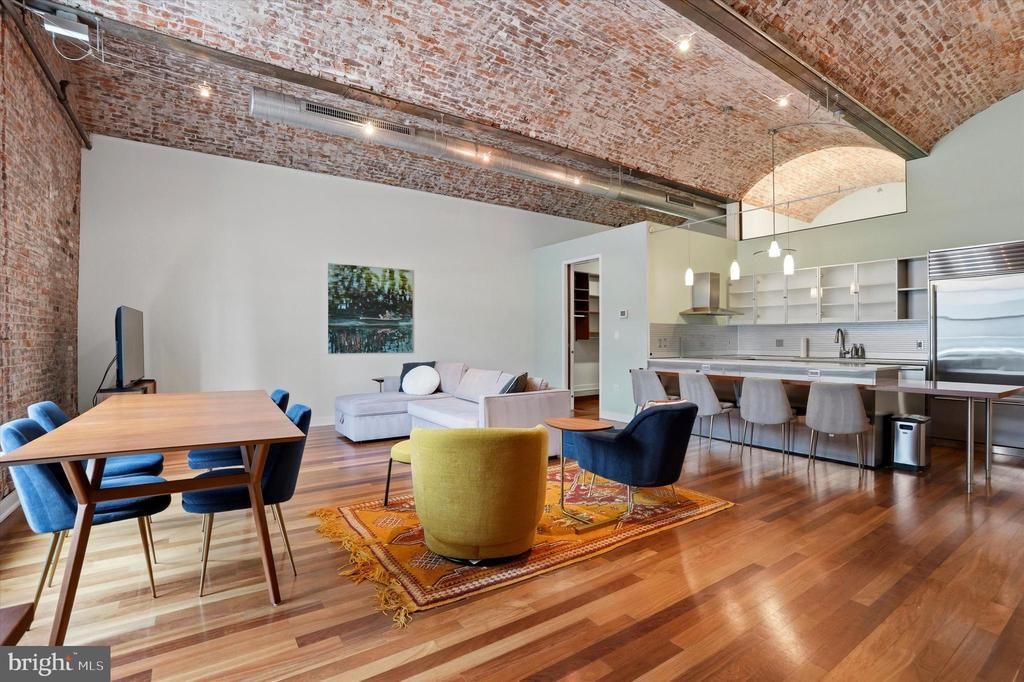 Experience unparalleled loft living in Residence #401 at The White Building, an exceptional 4th floor residence with a private hallway shared by only one other unit. The White Building is a rare, design-forward loft in one of Philadelphia’s most coveted neighborhoods. This dramatic open loft showcases a striking blend of industrial character and refined luxury, featuring exposed brick walls, soaring 16-foot barrel vaulted brick ceilings, and impressive 9-foot arched windows that flood the space with natural light. Rich Brazilian cherry hardwood floors and solid core doors further elevate the home’s sophisticated aesthetic. The chef-inspired kitchen makes a striking statement, appointed with sleek Pedini stainless steel cabinetry, a touch less faucet, and under-cabinet lighting. A full suite of premium stainless steel appliances elevates the space, including a Sub-Zero refrigerator, Bosch stove, microwave, dishwasher, and a five-burner induction cooktop with a stainless steel hood. Carrera white marble countertops, a metal backsplash, generous pantry storage, and an expansive island complete this exceptional culinary space. Thoughtfully designed for both style and function, this unit also features a custom California walk-in closet and an in-unit Bosch washer and dryer. The spa-like bath offers a luxurious retreat with a deep soaking tub, custom glass-enclosed shower, and elegant stone accents throughout. The White Building is a boutique, pet-friendly residence offering modern conveniences, including a state of the art virtual concierge, coded elevator, secure mailroom, and a fitness center. Ideally located in the heart of Midtown Village, the location offers a vibrant, unmatched urban lifestyle, just minutes from premier grocers, artisanal coffee shops, and multiple fitness studios.
