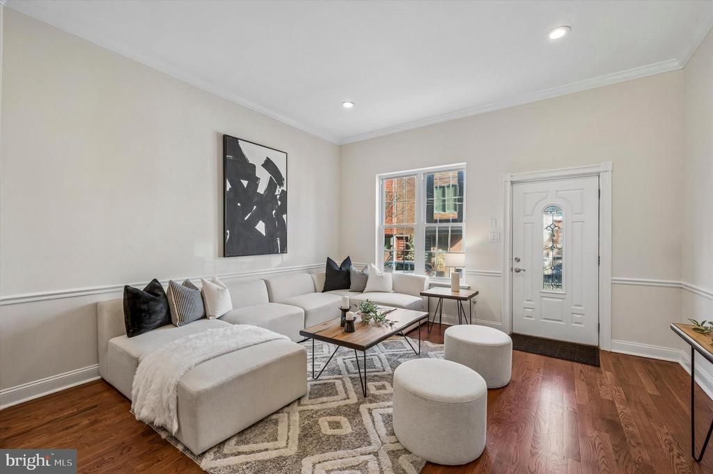Welcome to 1630 Fitzwater Street — a thoughtfully designed residence offering four levels of expansive, comfortable living in the heart of Philadelphia. Blending style, functionality, and modern convenience, this home is perfectly suited for today’s lifestyle, featuring multiple flexible living spaces, oversized bedrooms, generous walk-in closets, a finished basement, and two exceptional outdoor areas. The main living level welcomes you with an open, airy layout enhanced by 9-foot ceilings, recently refinished hardwood floors, and refined architectural details including chair rail and crown molding. A gas fireplace serves as a warm focal point in the living room, while a centrally positioned staircase creates a natural flow between the living, dining, and kitchen spaces without compromising the open-concept design. The dining area comfortably accommodates a table for eight beneath a statement chandelier and offers additional functionality with a coat closet—ideal for pantry overflow—and breakfast bar seating. Just beyond, the beautifully updated kitchen impresses with sleek quartz countertops, stainless steel appliances, a gray subway tile backsplash, and rich blue cabinetry that adds a sophisticated pop of color. A conveniently located powder room completes this level. Sliding glass French doors open to a composite deck and lower patio with planting beds and a dedicated grilling area—creating a seamless indoor-outdoor living experience perfect for entertaining. The second level features two generously sized bedrooms with custom, deep closets, along with a versatile bonus space ideal for a home office, den, playroom, or reading nook. A full laundry room on this floor adds everyday ease and practicality. Occupying the entire top level, the bright and airy primary suite is a true retreat. It boasts two walk-in closets, an additional flex space, and a spacious en-suite bath complete with a marble-topped double vanity, a walk-in shower with Carrara marble surround, and a separate jetted soaking tub. Crowning the home is a maintenance-free composite roof deck offering sweeping views of the Center City skyline—an exceptional setting for relaxing evenings. The finished basement provides even more flexible living space, ideal for a media room or home gym. Additional highlights include two high-efficiency HVAC systems (installed in 2021) providing dual-zone comfort and offering peace of mind for years to come. Ideally located, this home is just a short stroll to Rittenhouse Square, the Avenue of the Arts, South Street West, and a variety of public transportation options—placing the very best of the city right at your doorstep.