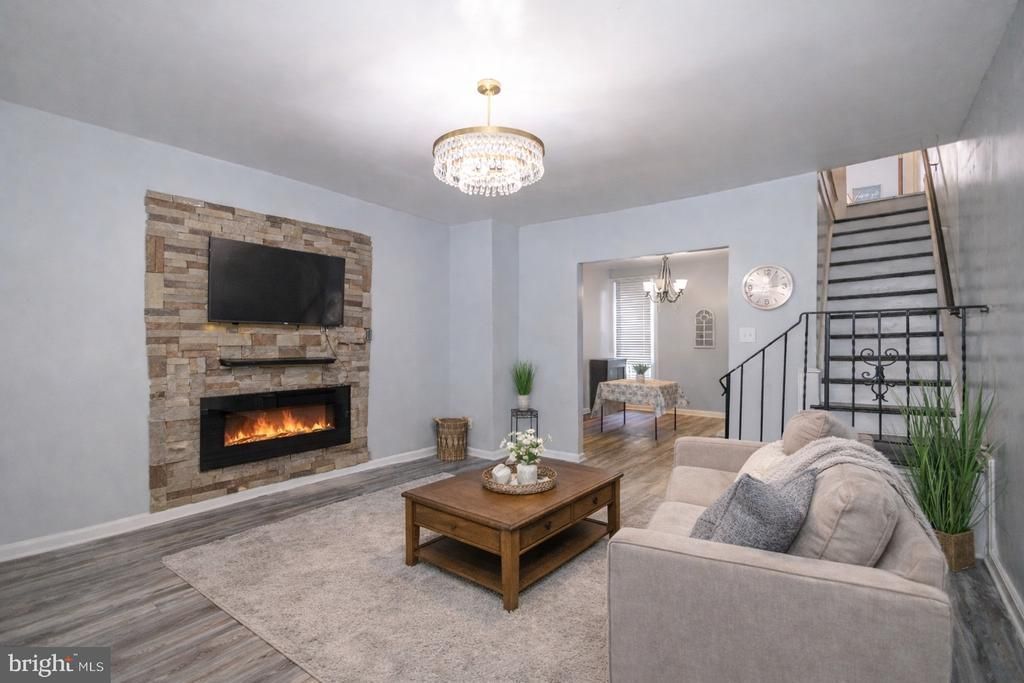 Welcome to this charming three-bedroom, one-and-a-half-bath home with an attached garage, located in Philadelphia’s desirable West Oak Lane neighborhood, known for its spacious streets and beautiful mature trees . As you enter, you’re welcomed by a striking stone accent wall featuring an LED fireplace and mounted TV. The spacious living room flows effortlessly into the oversized dining area, leading to a beautifully renovated kitchen with an island. A stylish tiled backsplash frames the built-in microwave and cabinetry, while pendant lighting above the island adds a true touch of luxury. Head upstairs to find three generously sized bedrooms. The hallway features the same luxury plank flooring that extends throughout the lower level, creating a cohesive look. The sun-filled primary bedroom showcases a stylish designer wallpaper accent wall. The second bedroom is impressively spacious, and the third bedroom also offers ample room. You’ll also find an oversized full bathroom on this level, highlighted by a skylight that fills the space with natural light. Heading down to the lower level, you’ll find a versatile bonus space that can serve as a playroom or be converted into an additional bedroom, along with a convenient half bath with natural light coming from the front windows of the property. This level also includes a laundry room, access to the attached garage, and a walk-out door leading to the rear of the property. This property also features an oversized front porch overlooking a fenced-in cement yard—perfect for kids to play or for letting the dog out. Don’t miss the opportunity to own this home with so much to offer. Please note few rooms virtually staged.