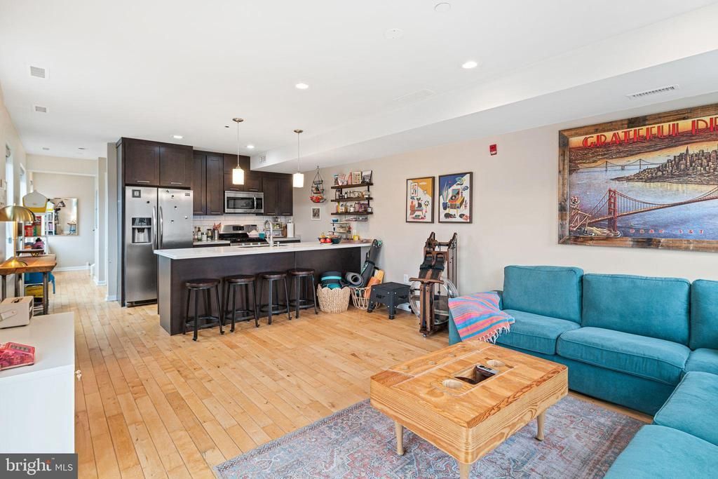 Available for a May move-in, this exceptional condominium rental offers space, light, and privacy rarely found in a rental property. Occupying the top two floors of a quiet building, this bi-level home provides over 1,200 square feet of living space with 2 bedrooms, 1.5 baths, and a private roof deck showcasing stunning skyline views. The main level features an open-concept living and dining area, perfect for both everyday living and entertaining. The kitchen is equipped with a full suite of stainless steel appliances, including a built-in microwave, dishwasher, and gas range. A convenient powder room and storage closet complete this level. Up the sun-filled open staircase, the second level offers a versatile first bedroom ideal for a home office or guest suite, upper-level laundry, and a spa-inspired full bathroom with a sliding glass enclosed shower. The spacious primary bedroom features large windows and closet. At the top, your private roof deck provides a peaceful retreat with incredible skyline views, no nearby neighbors, and plenty of room for outdoor furniture and grilling during the warmer months. Additional features include hardwood floors throughout, central air, custom window treatments, and a separate dedicated storage unit in the building. Located above Vineyard’s Café, your morning coffee is just downstairs. This fantastic Francisville location offers easy access to the Fairmount and Art Museum neighborhoods, and the Broad Street Subway is just three blocks away for a quick commute to Center City or the stadiums. A community garden just outside the building is lovingly maintained and enjoyed by the neighborhood. Pet-friendly at the landlord’s discretion, with a pet fee or deposit depending on type and weight. Available for a May move-in.
